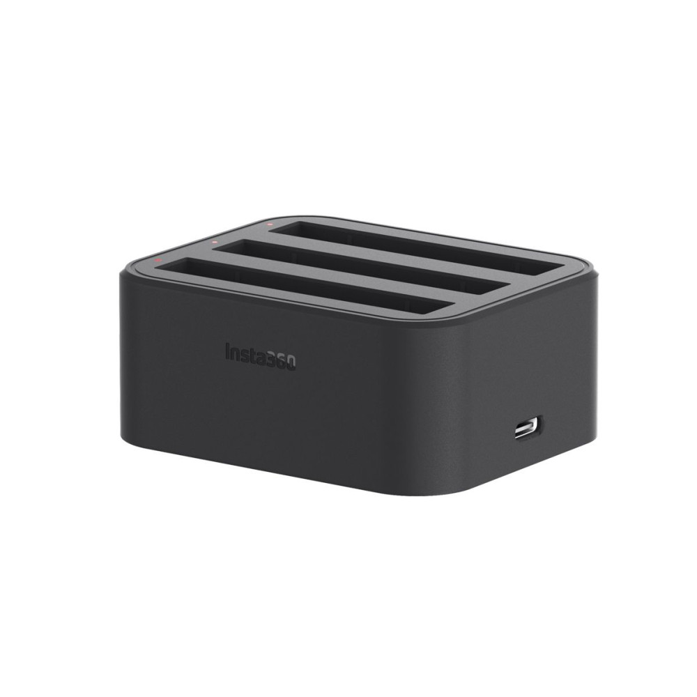 Töltő az Insta360 ONE X2 intelligens akkumulátorokhoz. A töltő egyszerre három akkumulátort képes tölteni.