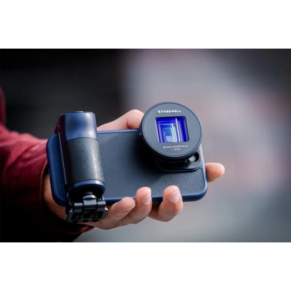 A Blue Streak 1,55x anamorfikus objektív új generációja a Sherpa rendszerhez. Kompatibilis az iPhone 13/14/15 Pro/Pro Max és Samsung Galaxy S23 Ultra tokokkal. A csomag tartalmazza az anamorfikus Blue Streak objektívet, amellyel gyönyörű filmkék fényeket érhetsz el 2,76:1 képarány mellett.