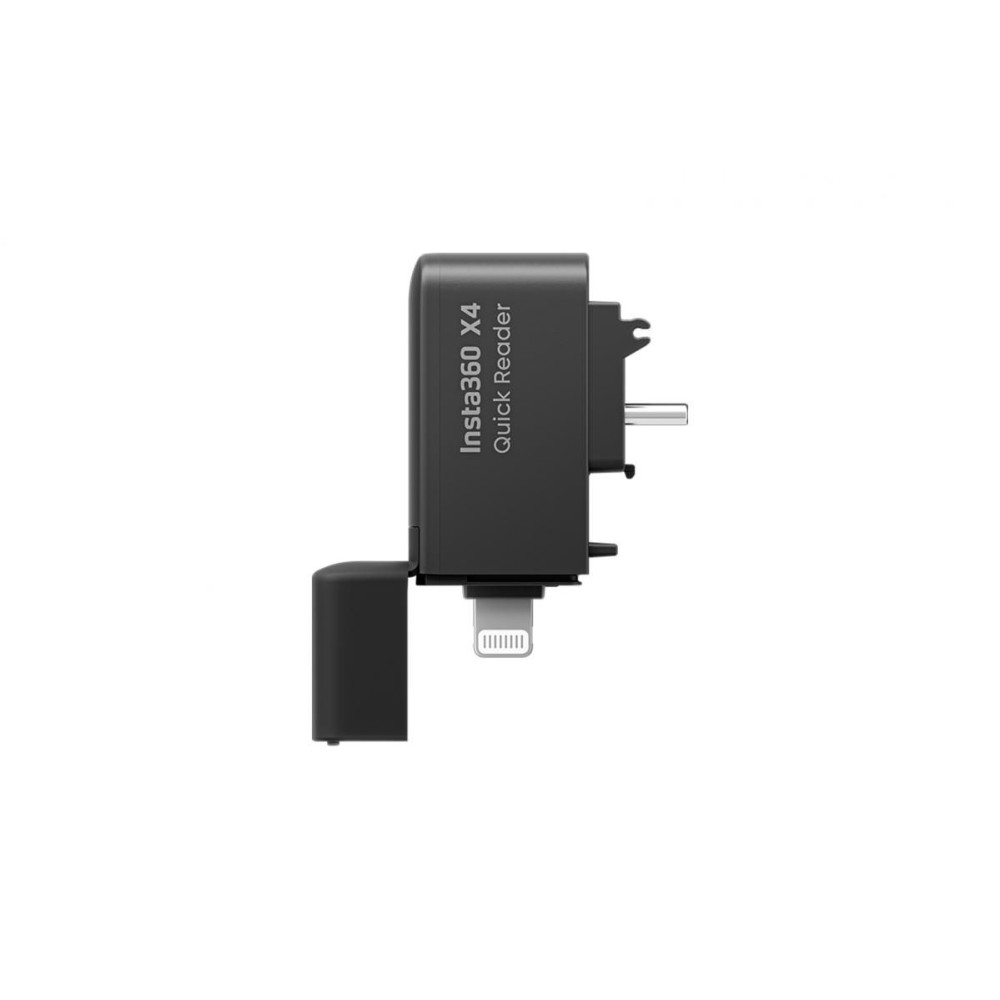 Gyors kártyaolvasó az Insta360 X4 fényképezőgéphez. Az olvasó segítségével gyorsan letöltheti a fájlokat az Insta360 X4 fényképezőgép kártyájáról, majd feltöltheti a fájlokat a telefonjára. Villám/USB-C csatlakozó. Súly: 12,5 g Méretek: 46 x 14 x 31 mm