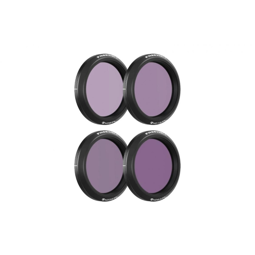 Négy darabos Freewell szűrőkészlet DJI Osmo Action 5 Pro akciókamerához. A készlet ND8/PL, ND16/PL, ND32/PL és ND64/PL szűrőket tartalmaz. Kompatibilis az Osmo Action 4 és Osmo Action 3 kamerákkal.