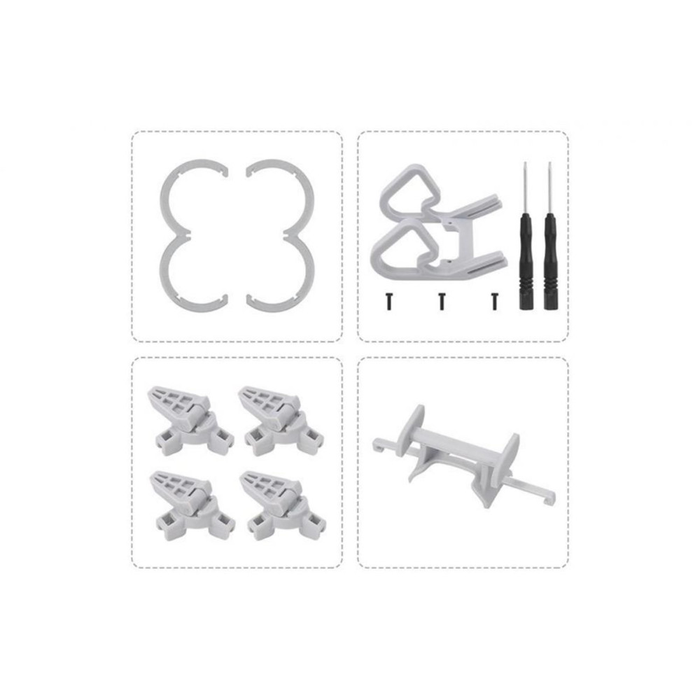 A DJI NEO Drone tartozékkészlet (60 g) alapvető védőelemeket tartalmaz a drónhoz. A készlet tartalmaz egy védőburkolatot a propellerhez, egy burkolatot a gimbalhoz, egy futóművet és egy farokszárnyat, amelyek nagyobb tartósságot és stabilitást biztosítanak repülés közben. Tartsa biztonságban drónját ezzel a könnyű és praktikus kiegészítőkészlettel.