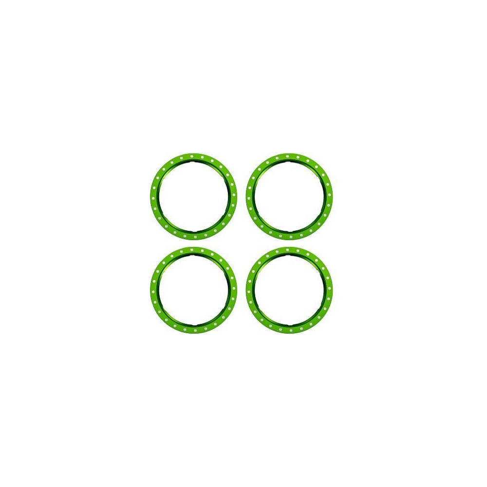 Traxxas beadlock gyűrű alumínium zöld (4), Pro Scale kerékrendszerhez tervezve, moduláris tárcsaalkatrészekkel és kiegészítő nejlongyűrűkre ragasztott gumikkal.