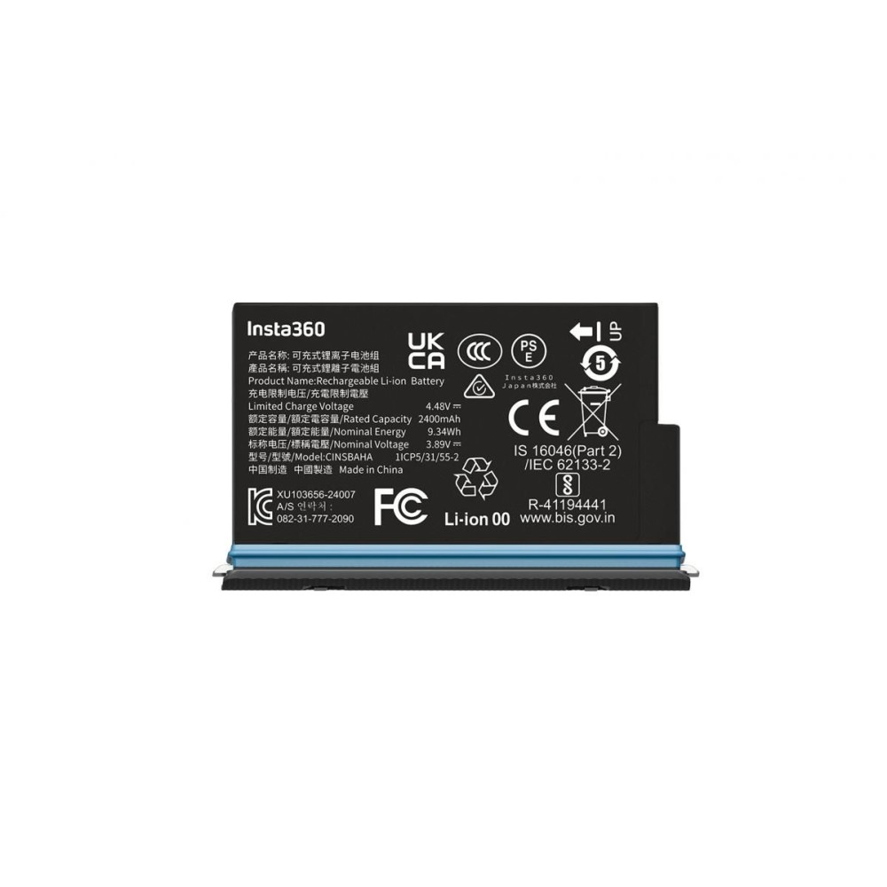 Az Insta360 X5 kamera akkumulátorát úgy tervezték, hogy hosszabb ideig lehessen filmezni még extrém körülmények között is. Az akkumulátor megnövelt kapacitása 2400 mAh. Akár 135 percnyi felvétel 5,7K felbontásban, 30 képkocka/másodperc sebességgel. Hidegálló, -20 °C-ig megbízhatóan működik. A mellékelt tok védi az akkumulátort, de két kártyahelyet is kínál.
