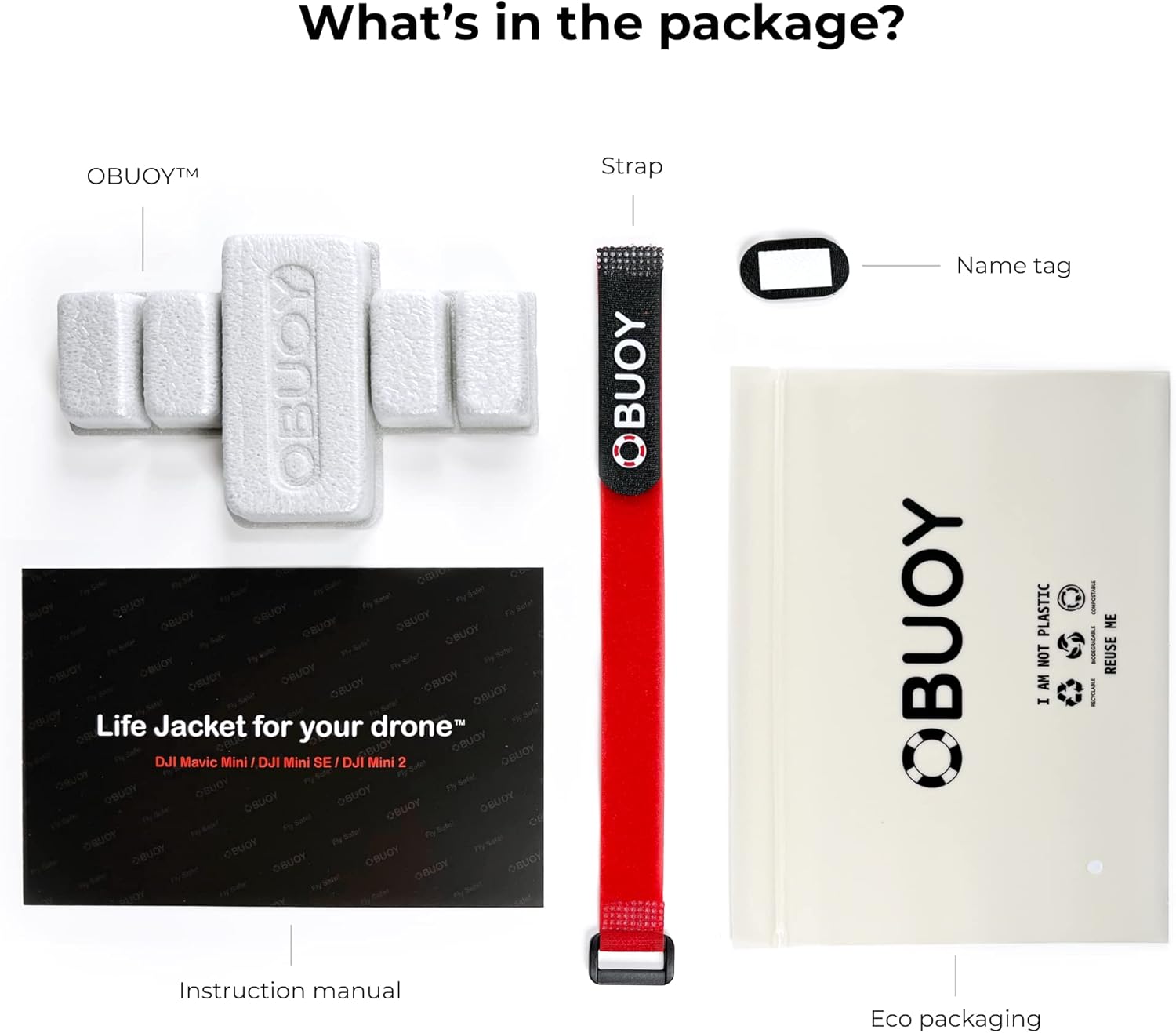 Az OBUOY egy egyedi kiegészítő - mentőmellény drónokhoz, amelyet úgy terveztek, hogy megakadályozza, hogy a drón a víz felszínére esés után a fenékre süllyedjen.