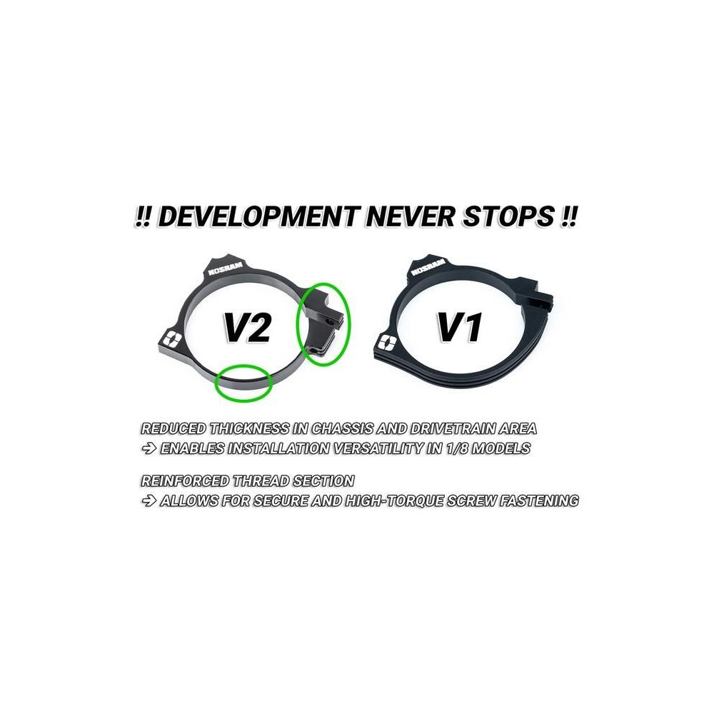 A NOSRAM alumínium ventilátortartó 40 mm-es ventilátorokhoz készült, és nagy szilárdságú csavarral van biztonságosan rögzítve a motorhoz.