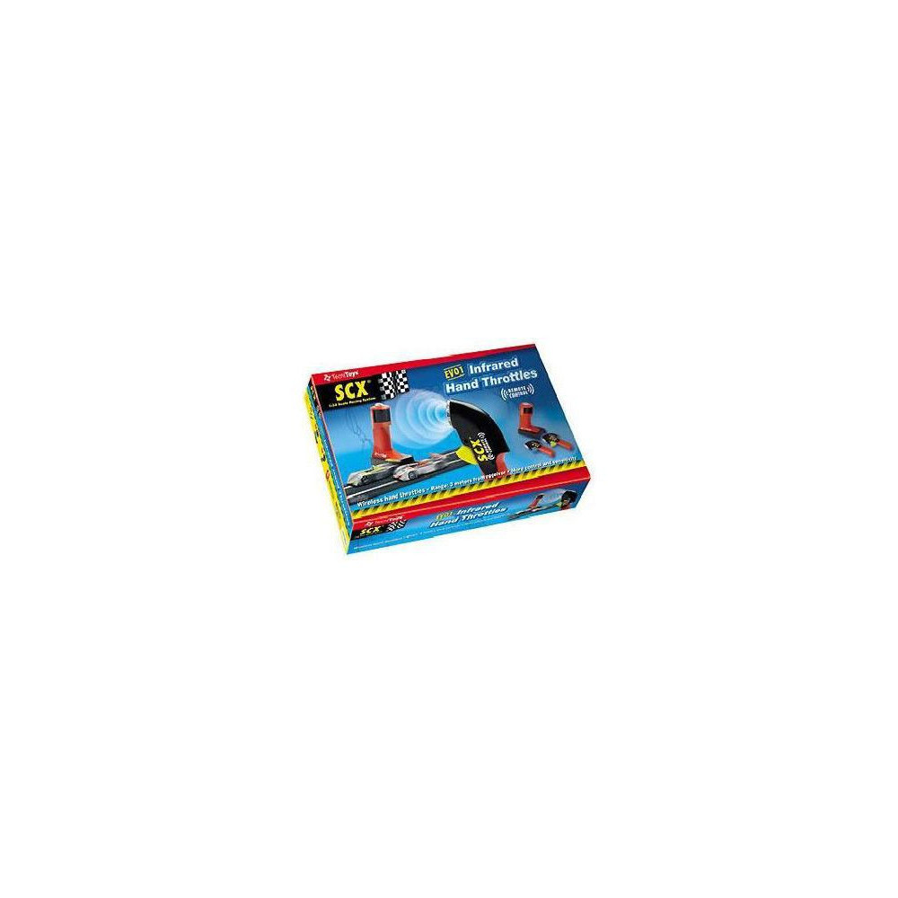 Eredeti tartozék az SCX analóg autópályához, régebbi verziójú pályarészekkel és négyzet alakú csatlakozókkal.Az infravörös vezérlő tornyon keresztül csatlakozik a csatlakozópanelhez, a vezérlők vezeték nélkül vezérlik az autók sebességét.