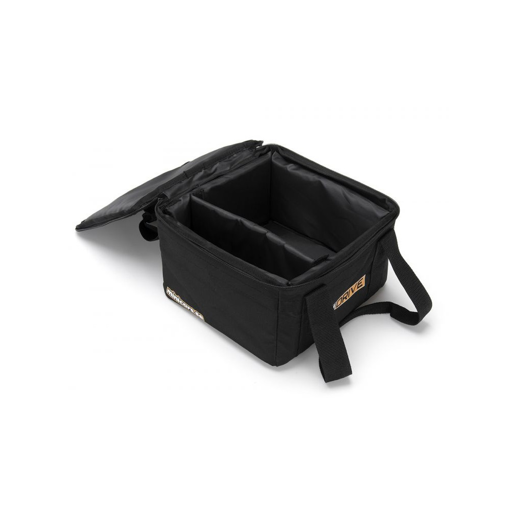 Táto čierna taška na RC príslušenstvo od spoločnosti M-Drive s rozmermi 24 x 23 x 14 cm je ľahký kufor určený na bezpečné uloženie, prepravu a ochranu RC vysielača, nabíjačky alebo batérií pre vaše RC vozidlo.