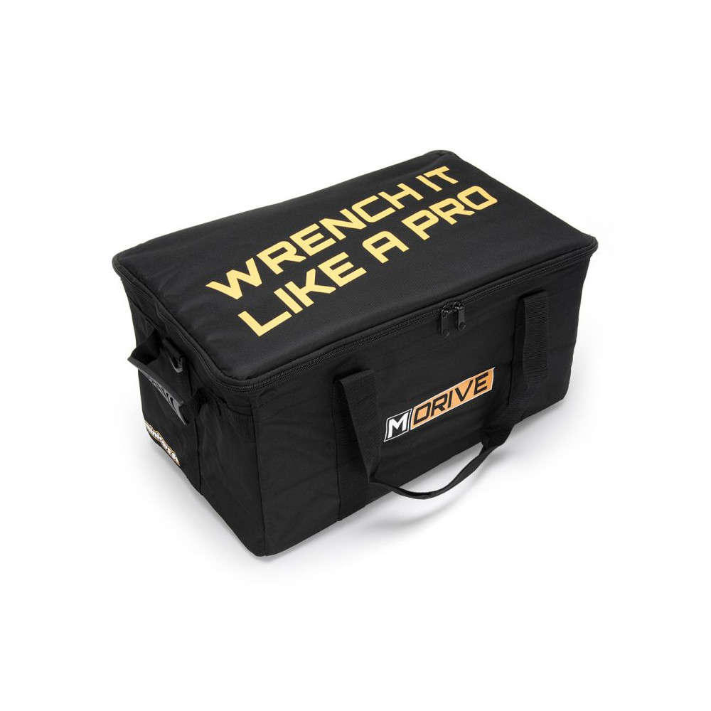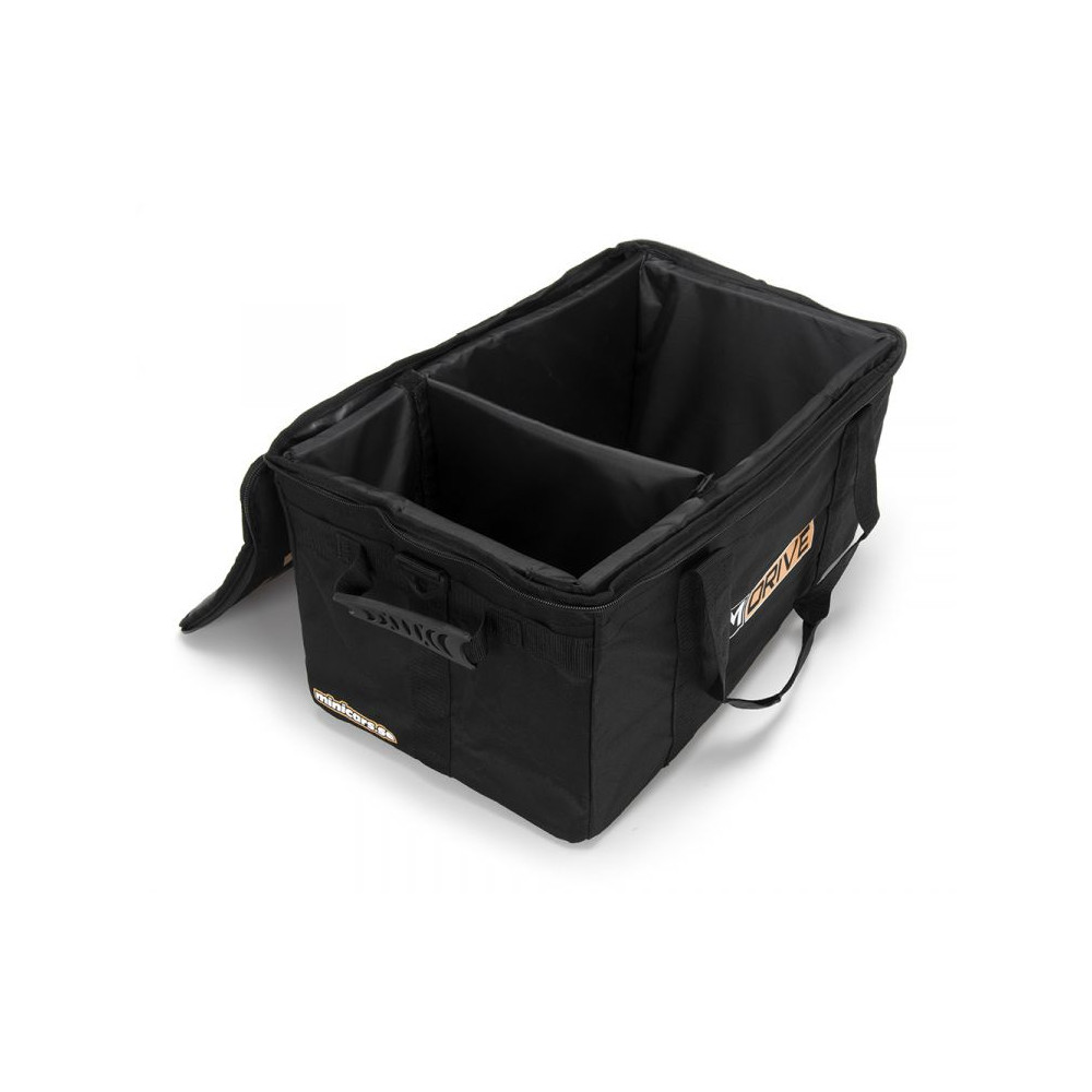 Táto čierna taška na RC vozidlá s rozmermi 49 x 27 x 24 cm od spoločnosti M-Drive je ľahký kufor navrhnutý na bezpečné uloženie, prepravu a ochranu vášho RC auta/nákladného auta 1/16-1/18 a jeho vysielača. Je vhodná aj pre autá 1/10 (bez nainštalovanej odnímateľnej prepážky), ako sú autá Bandit, 4-Tec 2.0/3.0 a Factory Five Hot Rods od Traxxasu.