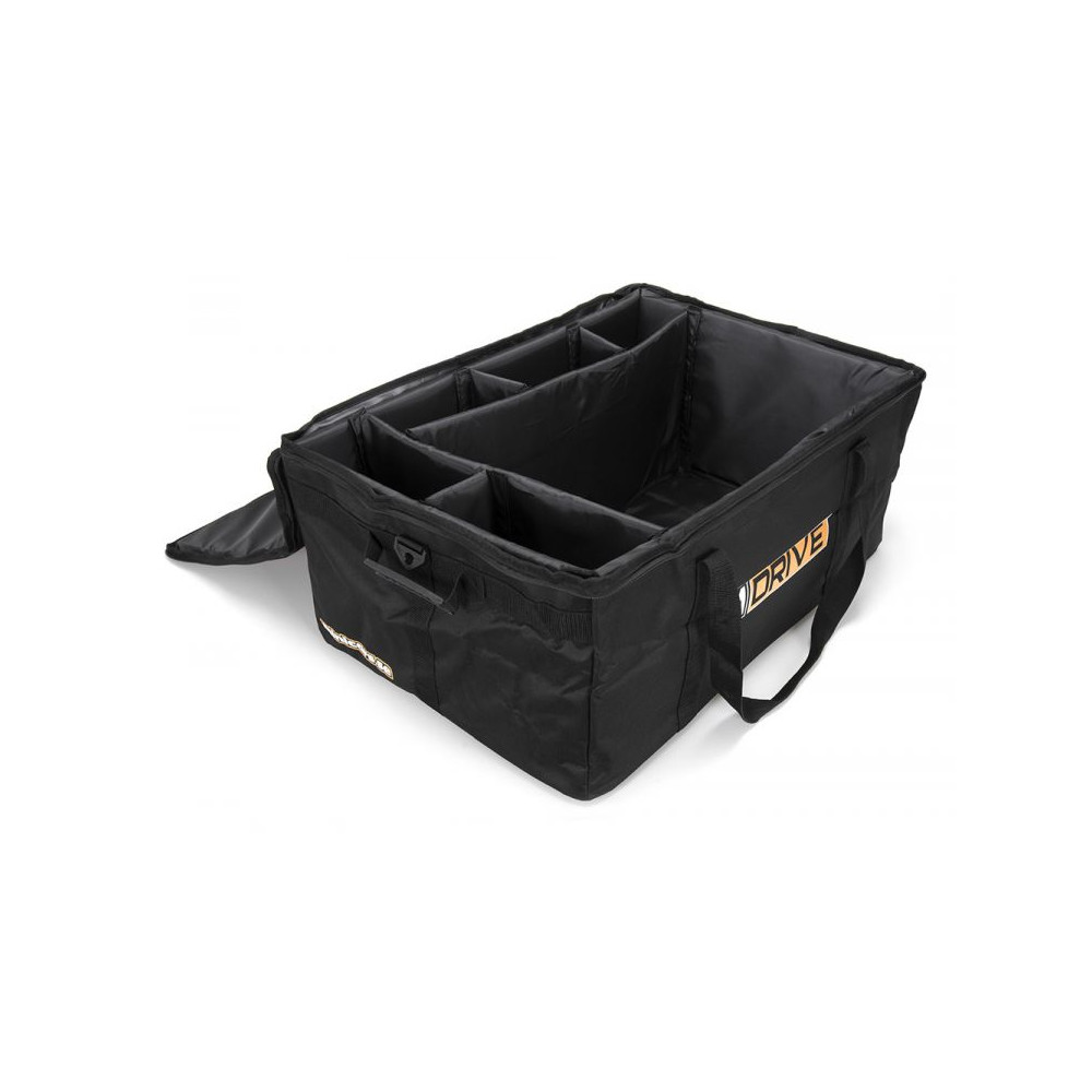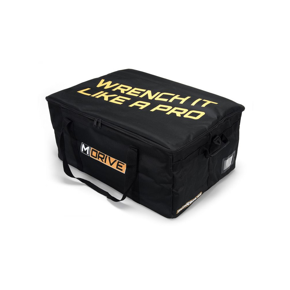Táto čierna taška na RC vozidlá s rozmermi 65,5 x 45,5 x 28 cm od spoločnosti M-Drive je ľahký kufor určený na bezpečné uloženie, prepravu a ochranu vášho auta, nákladného auta, monster trucku v mierke 1/10 a jeho vysielača/nabíjačky.