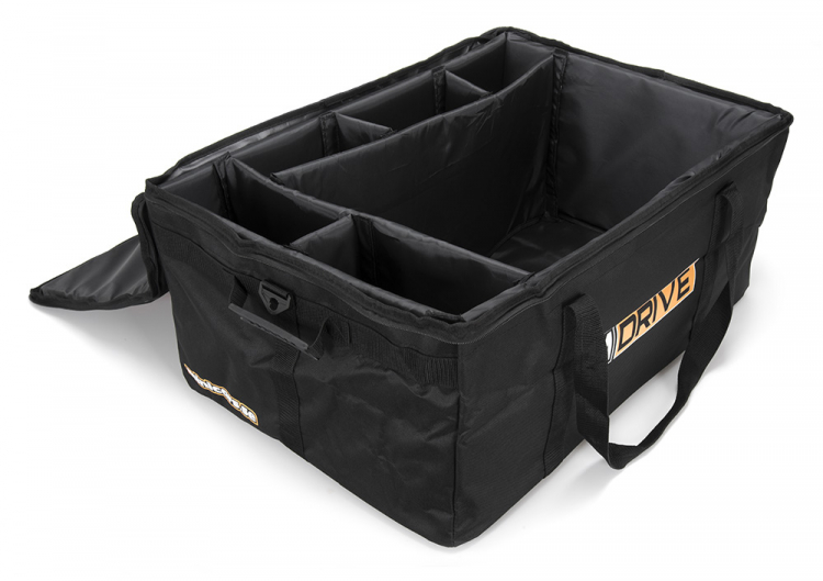 Vnútorné priehradky sú odnímateľné a umožňujú uložiť vysielač do vozidla, nabíjačku, niekoľko náhradných batérií a náhradné pneumatiky atď.