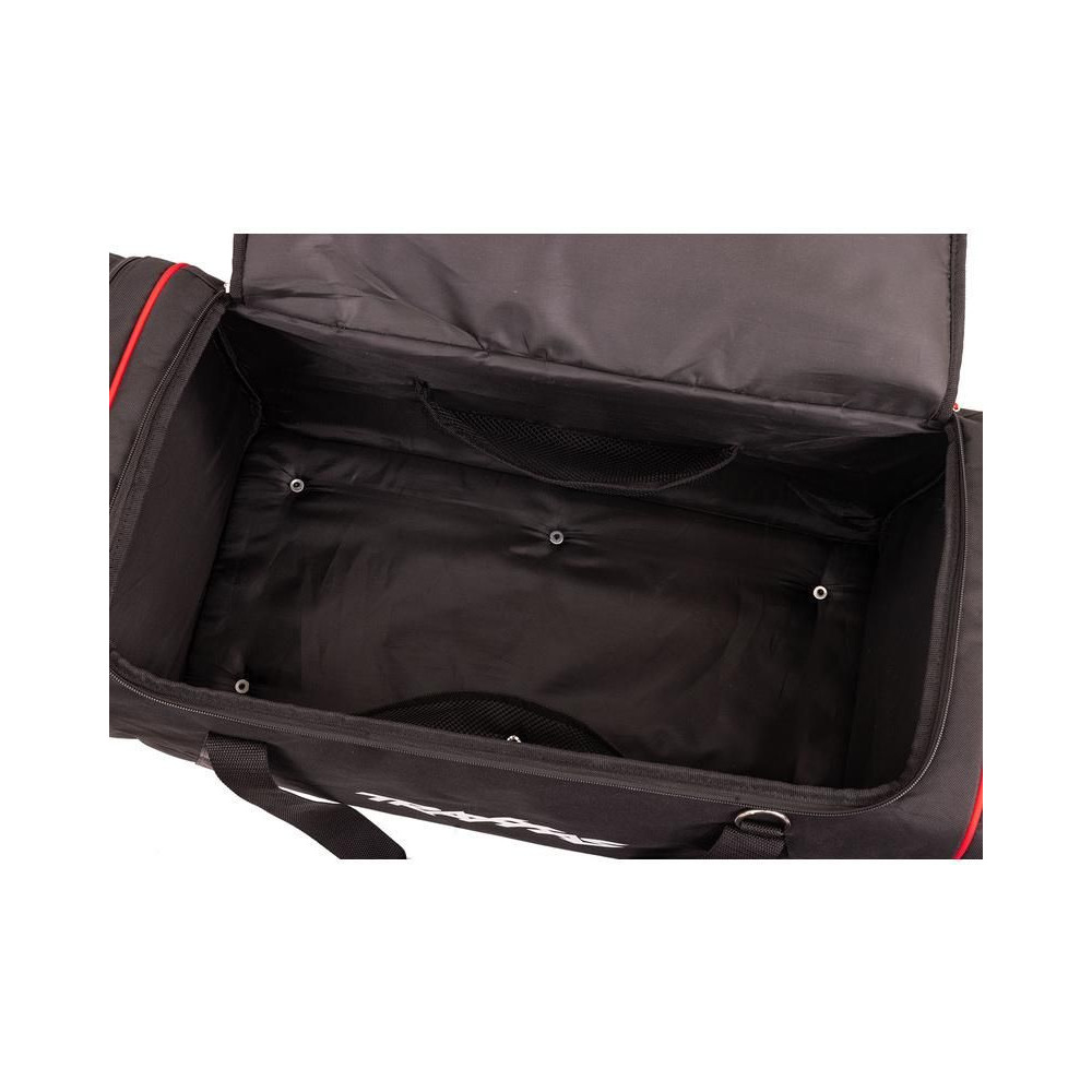 Speciálisan kialakított sporttáska RC autómodellek és tartozékok biztonságos szállítására. Nagy, párnázott főzseb a modell számára, oldalsó kisebb zsebek a jeladó, szerszámok, akkumulátorok és egyéb felszerelések számára. Tartós szövet, párnázott pántok. Méretek 30x30x75cm.
