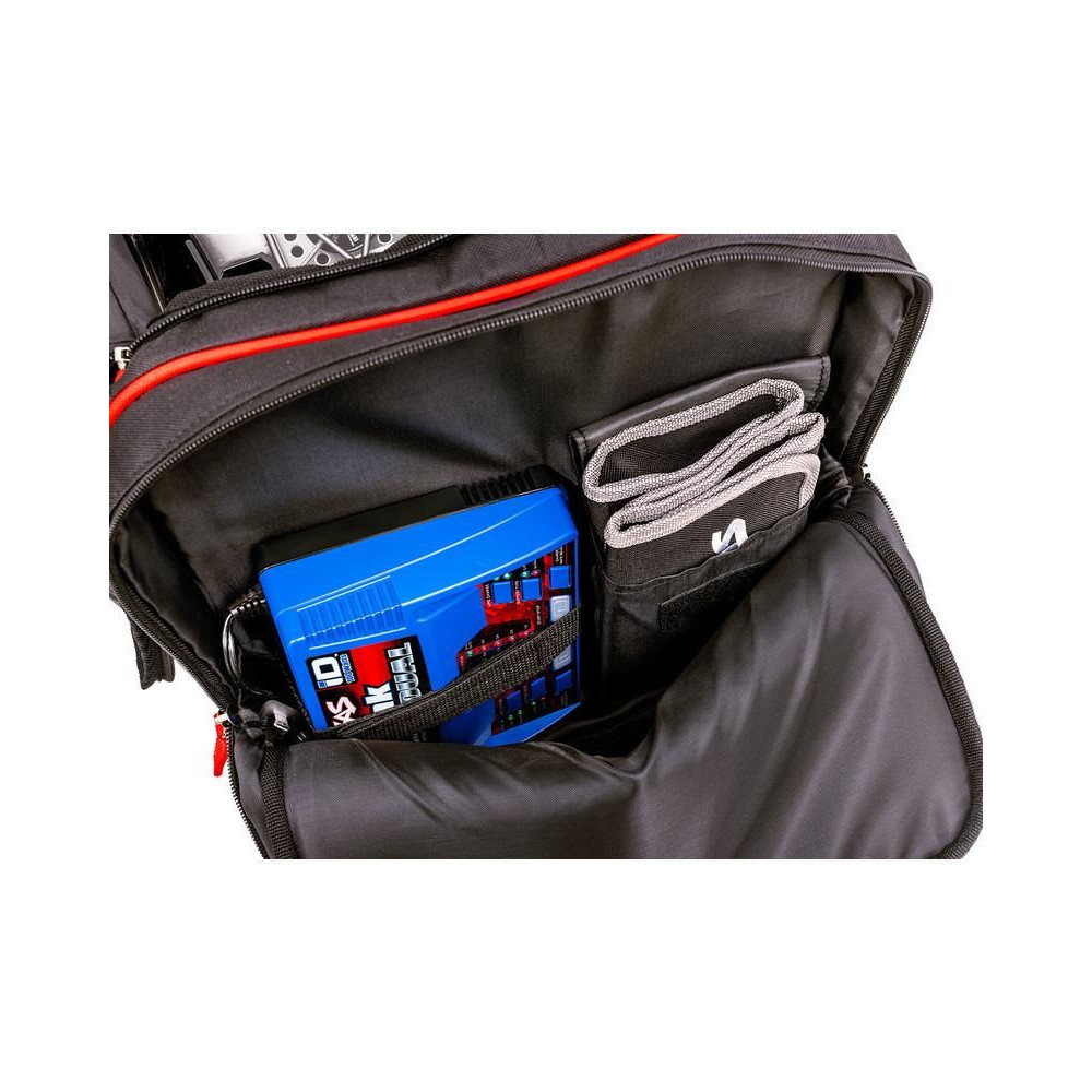 Speciálisan tervezett sporttáska RC autómodellek és tartozékok biztonságos szállítására. A nagy, párnázott főzsebben elfér a modell, míg a kisebb oldalzsebeket a jeladó, szerszámok, akkumulátorok és egyéb felszerelések számára tervezték. Védje értékes RC modelljét és szállítsa stílusosan, biztonságosan.