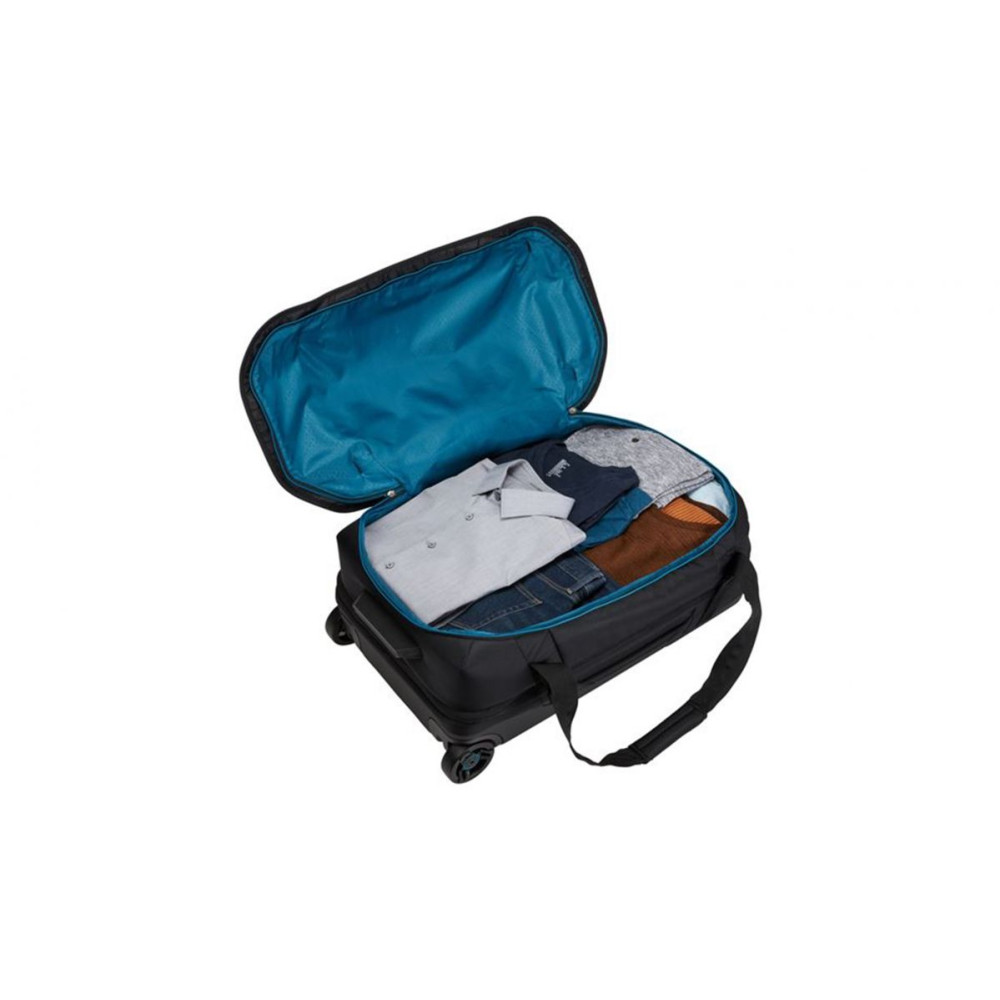 A két különálló rekeszre osztott nagyméretű belső tér megkönnyíti a csomagolást. A masszív és tartós kerekek és a merev, profilozott, teleszkópos V-Tubing fogantyú zökkenőmentes és könnyű szállítást garantálnak. A rögzítőheveder átfűzésére szolgáló hurok megkönnyíti az utazást, amely további csomagok rögzítését teszi lehetővé.
