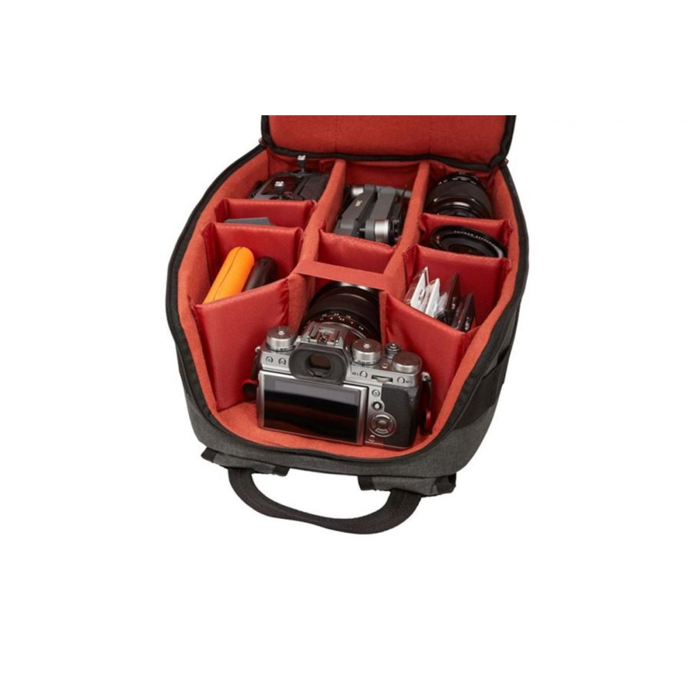 A hátizsák párnázott rekesze alkalmas a fotós felszerelések vagy drón tartozékok széles skálájának tárolására. Teljesen állítható, párnázott elválasztóelemek biztosítják a belső tér testreszabhatóságát. Párnázott tárolóhely egy legfeljebb 13"-os tablet vagy laptop számára. Könnyű hozzáférés a fényképezőgéphez vagy laptophoz felülről a két csúszós cipzáron keresztül anélkül, hogy az egész hátizsákot ki kellene nyitni.