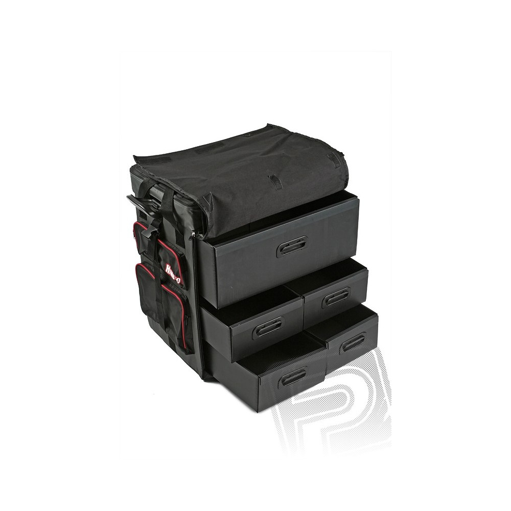 Hordtáska az 1:8 vagy 1:10 méretarányos modellek hordozására, beleértve 5 rekeszt, kerekeket, kihúzható fogantyút. A táska mérete 66x38x60 cm.