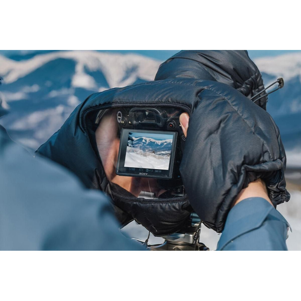 Tartsa melegen fényképezőgépét még extrém körülmények között is a PGYTECH Camera Cold-Proof Warm Cover Telephoto Edition segítségével. Ez a téli védőhuzat 35 g kiváló minőségű kacsatoll (90% fehér pehely) töltetű és 650 cuin töltetű, megbízhatóan védi felszerelését a fagytól, a nedvességtől és a párásodástól. A független toknak köszönhetően akár 450 mm-es teleobjektívekhez is ideális. Az IPX4 védelemmel ellátott vízálló anyag és a kémlelőablakos kialakítás kényelmes és problémamentes fotózást biztosít még nehéz téli körülmények között is.