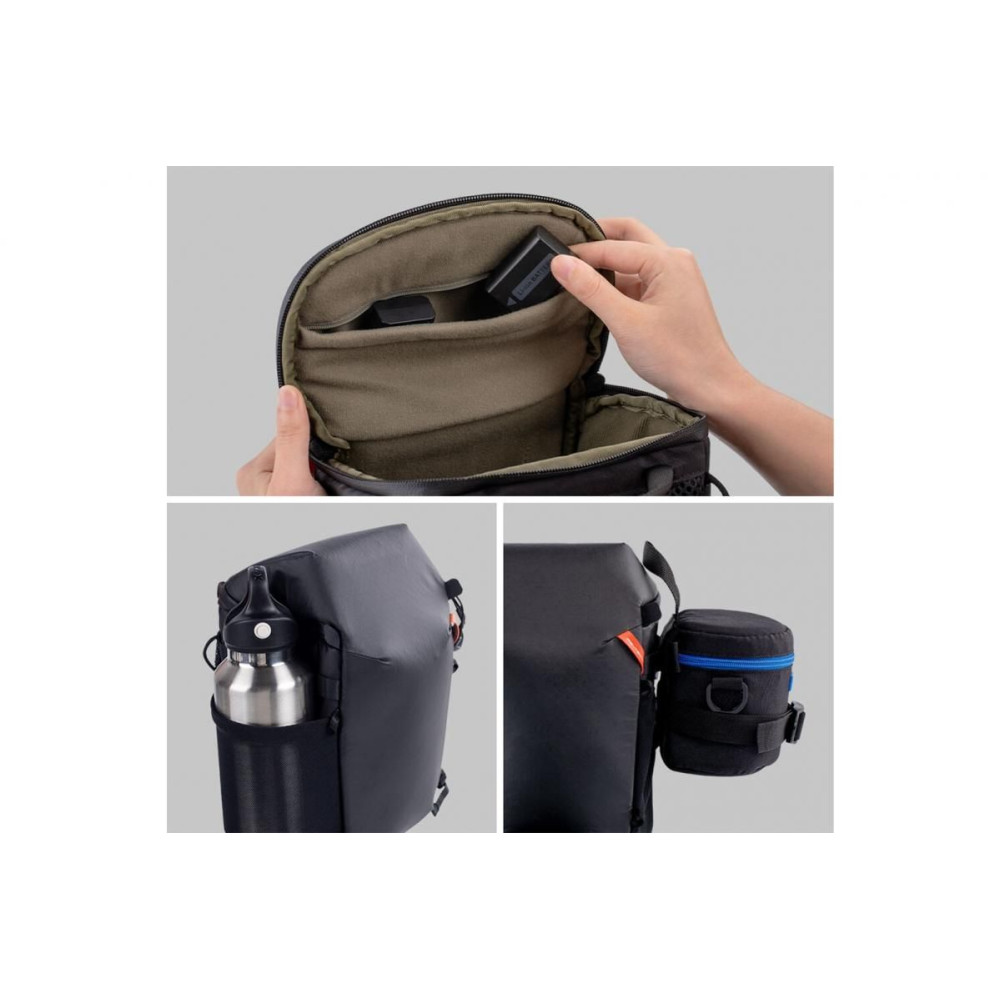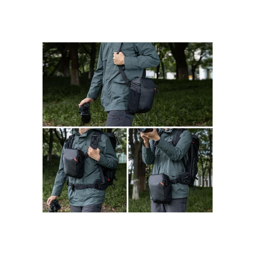 A PGYTECH P-CB-257 kameratok univerzális, könnyű és tartós megoldás a felszerelés védelmére és szállítására. HyperGuard anyagból (CORDURA® + PU bevonat) készült, így ellenáll a kopásnak, a víznek és a nehéz terepviszonyoknak. A bővíthető aljnak köszönhetően egy 24-70 mm-es objektívvel ellátott kamerát, kihúzás után pedig egy nagyobb, 70-200 mm-es objektívvel ellátott szerelvényt is elbír. Különböző viselési módokat kínál – vállon, mellkason vagy csípőn. A belső rugalmas rekeszek, hálós zsebek, YKK cipzárak és rögzítési pontok biztosítják a biztonságot, az átláthatóságot és a kényelmet.