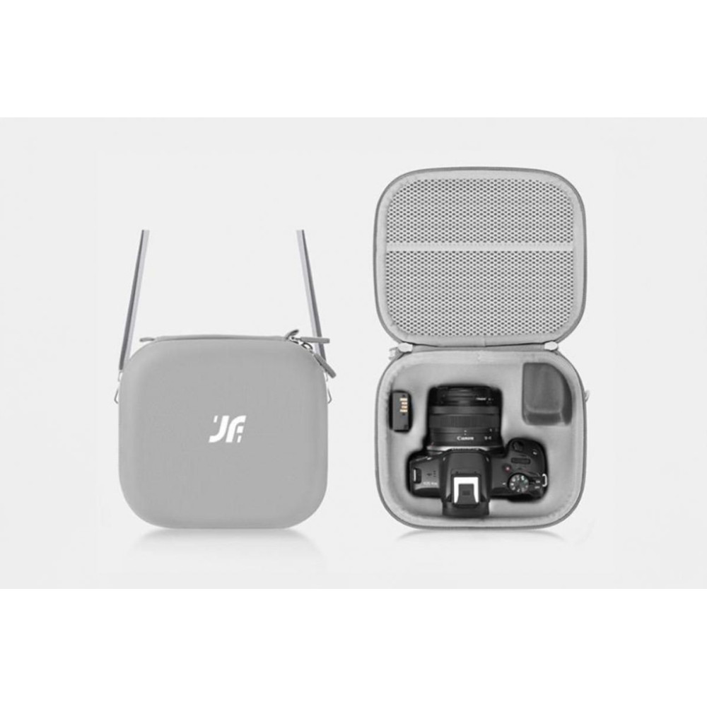 A Canon EOS R100 PU tárolótokja biztonságos és kényelmes tárolást kínál a fényképezőgép és a tartozékok számára. A tartós PU anyag és a puha lycra védi a készüléket az ütésektől, karcolásoktól és portól. A kompakt méretek és a 254,6 g-os súly könnyű hordozhatóságot biztosít, a praktikus vállpánt pedig kényelmes hordozást biztosít. Az elegáns szürke kialakítás univerzális, és alkalmas mindennapi használatra és utazáshoz.