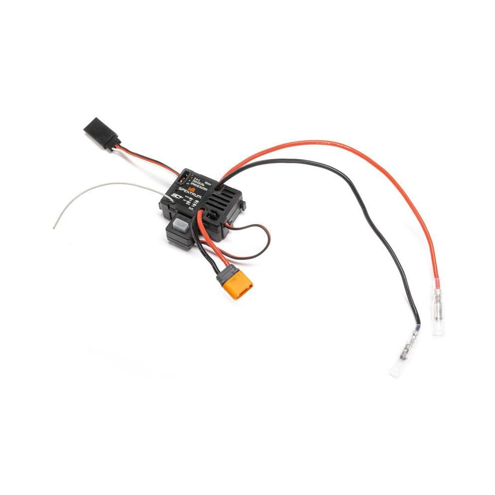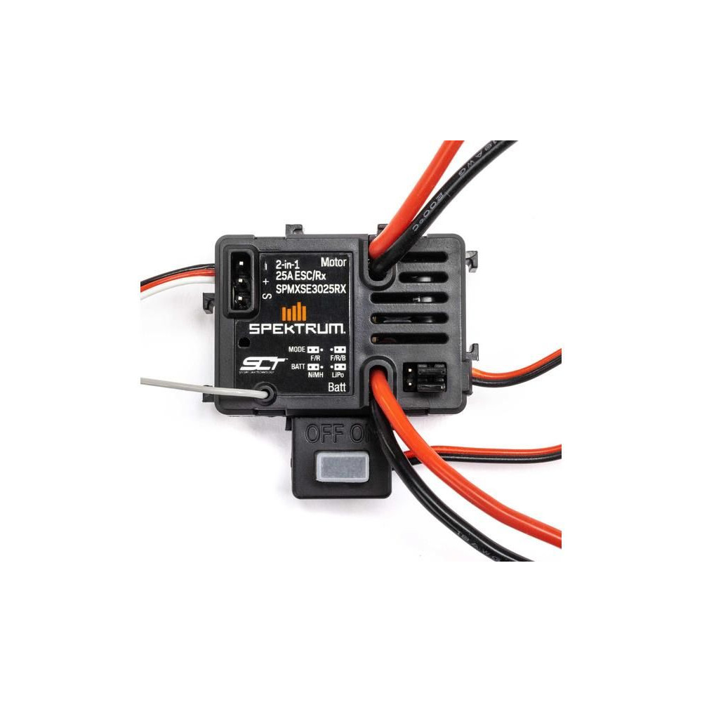 Pótalkatrész a Losi 1:18 Mini LMT Grave Digger és Son-Uva Digger RC modellekhez: 25A SLT DC szabályzó/vevő IC2 csatlakozóval. BEC 6V/3A, 380/390-es motorhoz, motor kimeneti csapok 3,5mm, súly 40g.