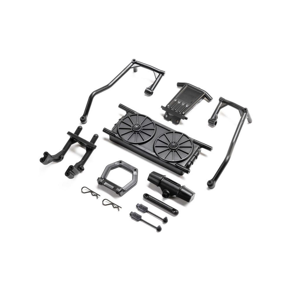 Pótalkatrész RC modellautóhoz Losi 8ight-X Super Lasernut Buggy: lökhárító, karosszériaoszlop.