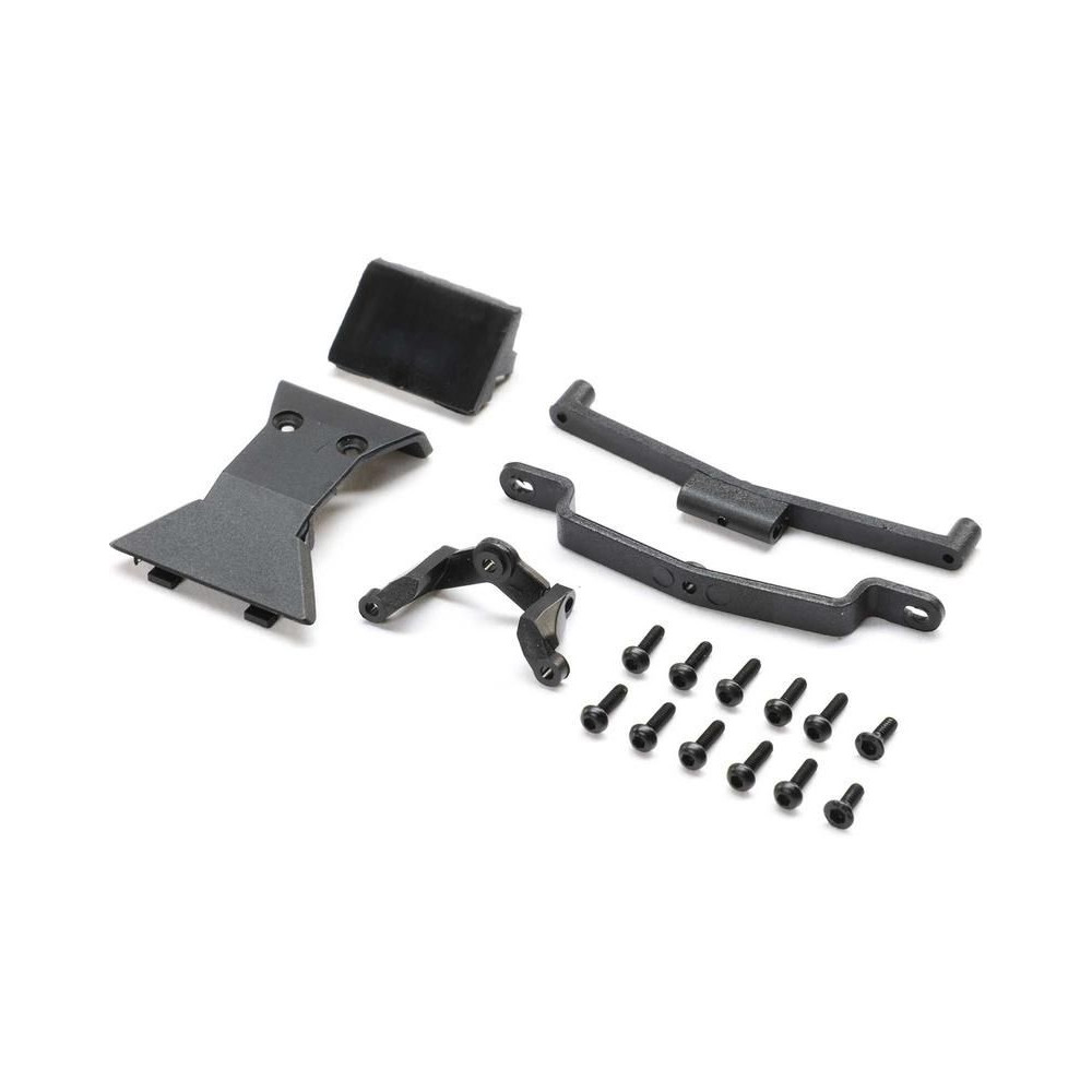 Losi 1:28 Micro-T RC modellautó alkatrész: lökhárító, karosszéria konzolok és szerelési tartozékok.
