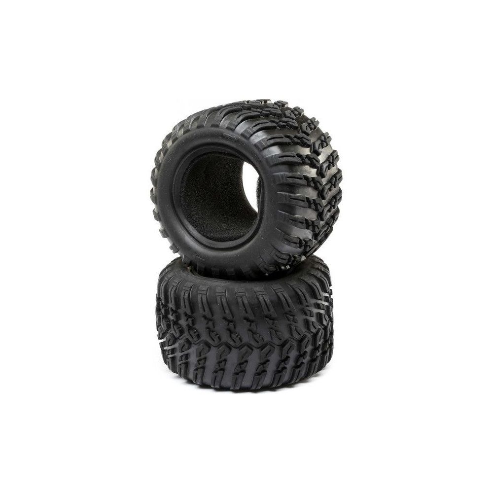 Pótalkatrész RC modellautókhoz Losi Tenacity Truggy 1:10 4WD: a gumiabroncsok (2 db) agresszív futófelülettel hosszú élettartamot és első osztályú teljesítményt biztosítanak.