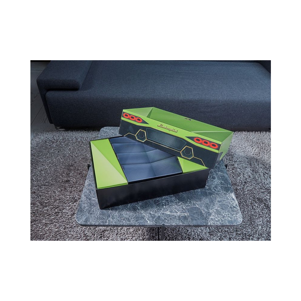 - Ez az 1:8 méretarányú, élénk lime zöld színű, arany felnikkel és díszítésekkel ellátott modell több mint 13 cm (5") magas, 60 cm (23") hosszú és 25 cm (9") széles.