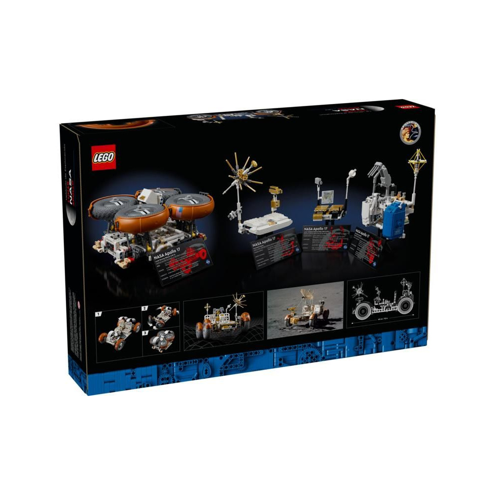 Szedd szét a NASA járművet, illessz hozzá felszereléseket, és teszteld a kormányzást és a felfüggesztést. Képzeld el, milyen lenne a Holdon járni és holdi talajmintákat gyűjteni. Nézd meg az akkumulátor-modellt, amely fűtő- és hűtőelemeket tartalmaz, valamint a TV-kamerát antennákkal. Fedezd fel a kommunikációs egységet, próbáld ki a lapátot és fúrót is tartalmazó eszközöket, és fúrd ki a LEGO téglákból készült holdkőzeteket. A készlet tartalmazza a Traverse Gravimeter kísérletet is, amely az Apollo 17 küldetés része volt, valamint a Big Muley - az Apollo-program részeként a Földre hozott legnagyobb kőzetminta - tiszteletére készült emlékművet.
