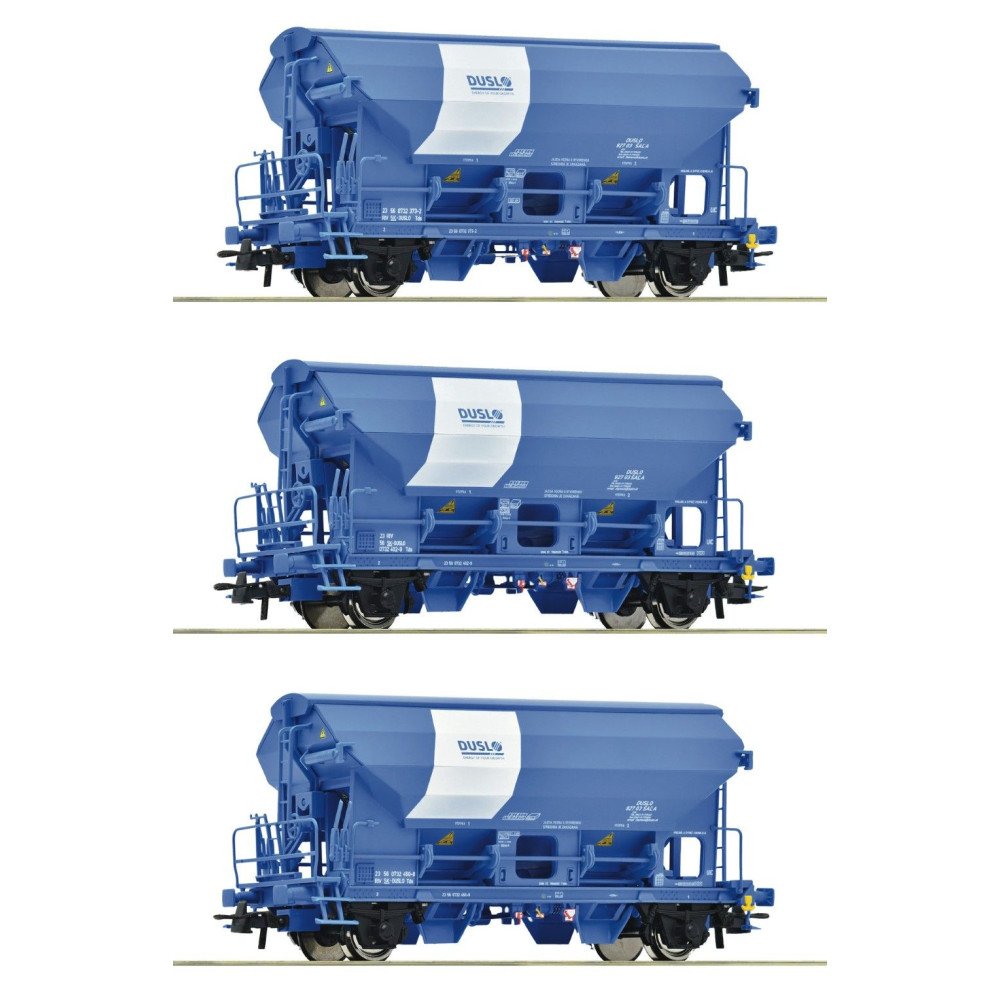 A Duslo cégtől származó, három forgótetős Tdns típusú kocsiból álló kocsikészlet.