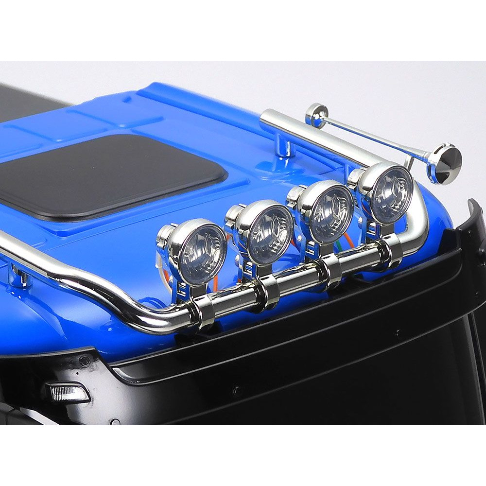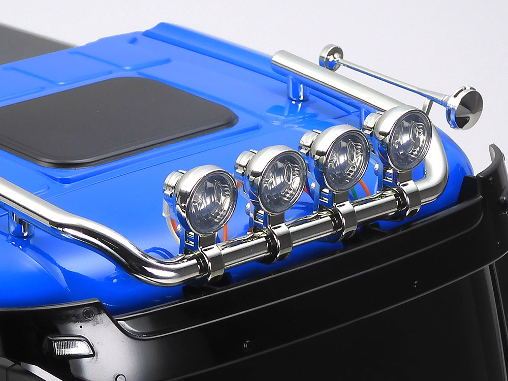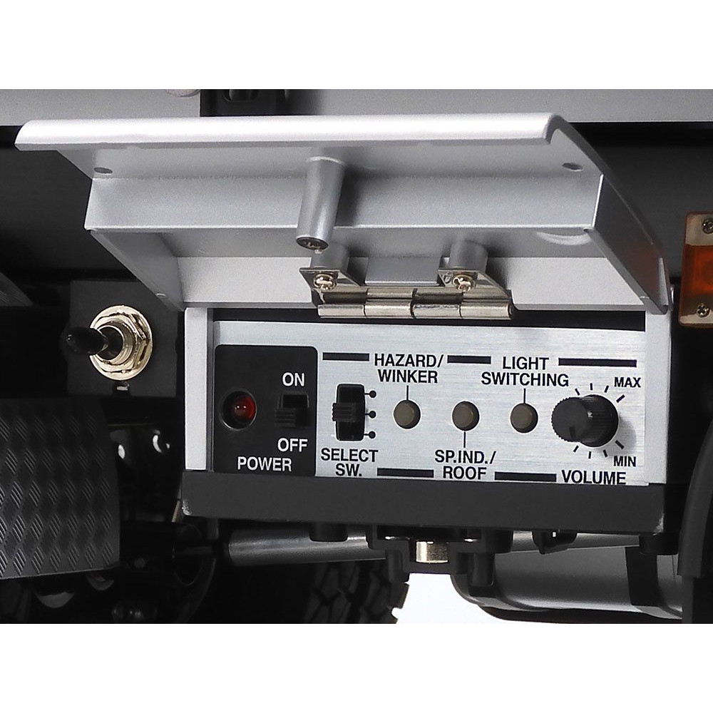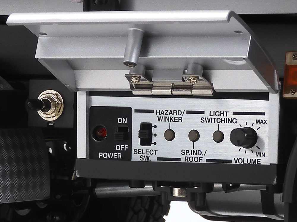 A Tamiya multifunkciós vezérlői (nem tartozékok, külön kaphatók) fényeket, hangokat és rezgéseket kínálnak, hogy kísérjék az R/C teherautós élményeidet. A motorhangokat digitálisan rögzítették egy valódi teherautóból, és a kürttel, a sebességváltással és sok más valósághű hanggal együtt azt az érzést kelti, mintha egy teherautót vezetnél.Kérj egy igazi járművet! Emellett a fényszórók, a féklámpák, a ködlámpák, a vészvillogók és az irányjelzők is egy kattintással vezérelhetők. Kérjük, vegye figyelembe, hogy a hátsó lámpák megvilágításához hosszabb kábelekre van szükség (az 56549, 56550 és 56551 cikkszámú cikkszámok külön kaphatók).