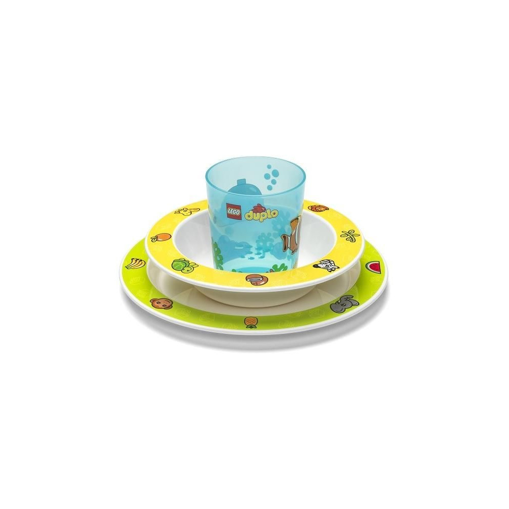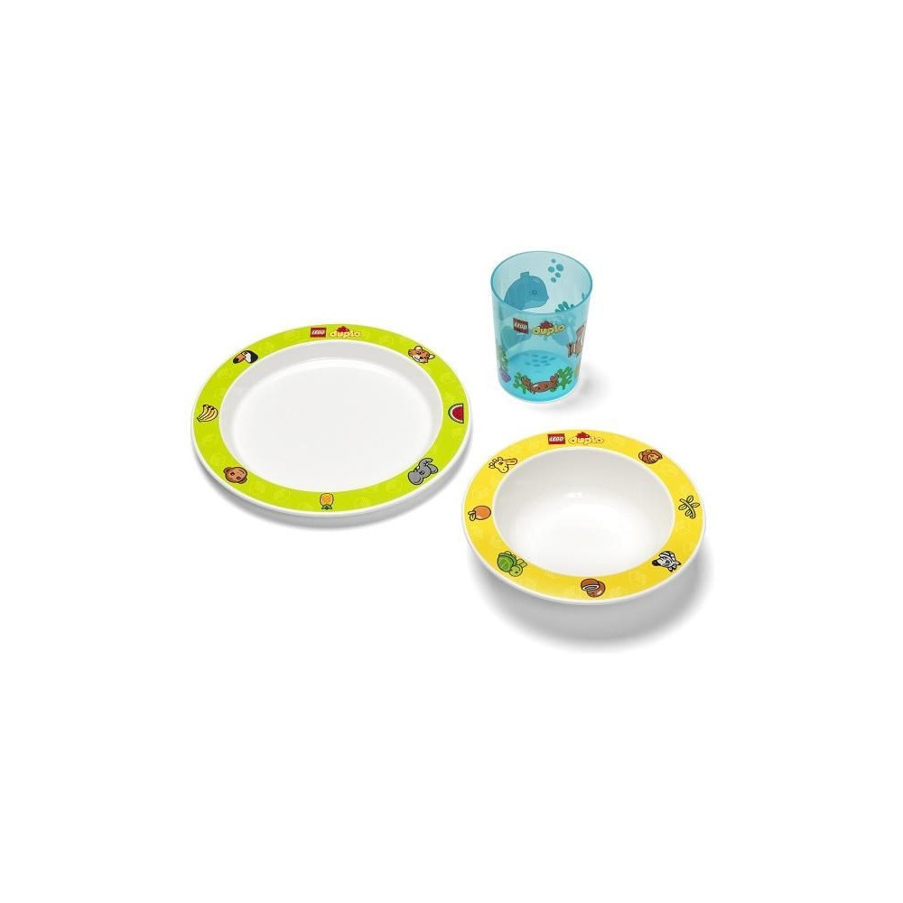 Egy étkező készlet minden kis LEGO Duplo rajongónak. Lapos és mély tányérból és csészéből álló készlet játékos kivitelben. PP műanyagból készült, mosogatógépben és mikrohullámú sütőben mosható.