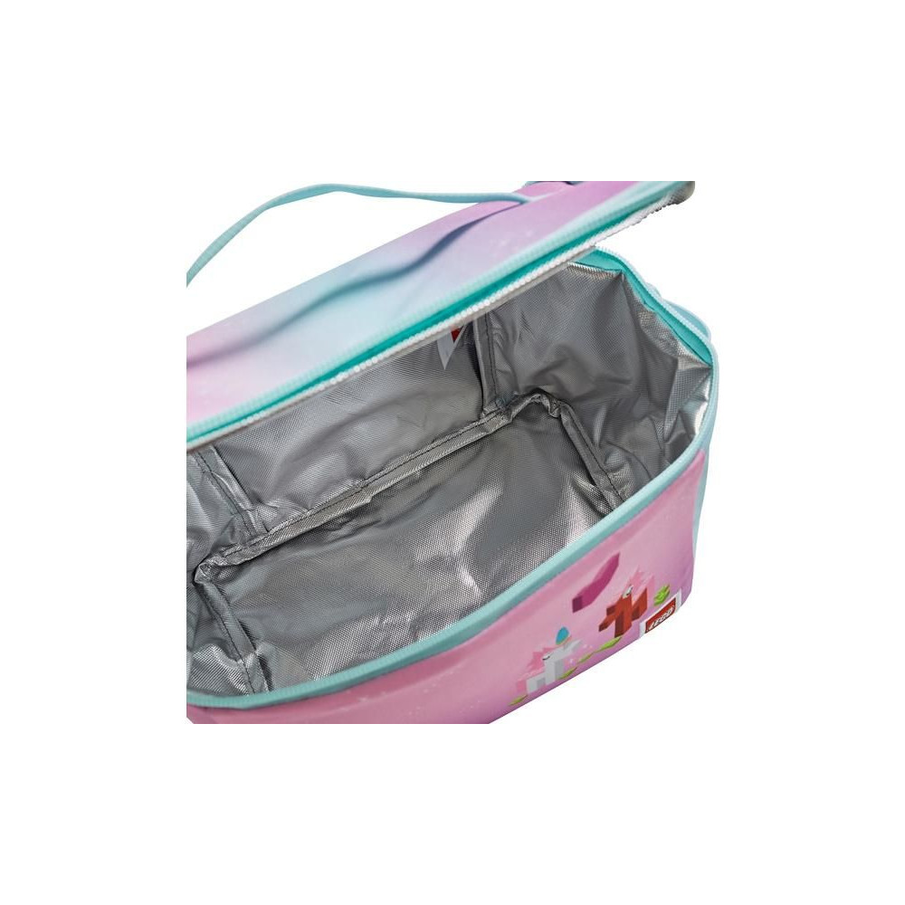 Stílusos LEGO dizájnú hűtőtáska. A belső szigetelt rekesz hidegen tartja az ételeket és italokat. A belső rekesz nem nedvszívó anyagból készült a könnyű tisztítás érdekében. Például egy LEGO uzsonnásdoboz palackokkal tárolható a táskában.