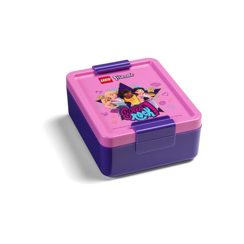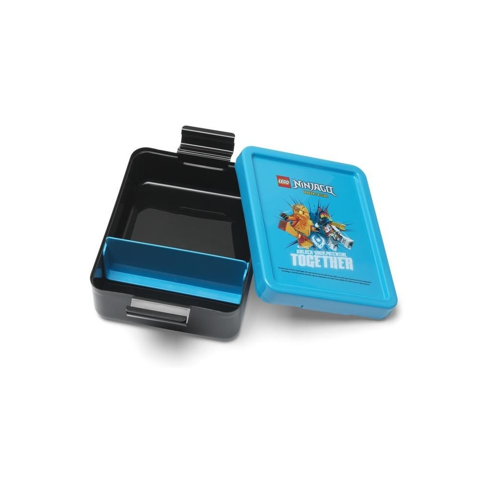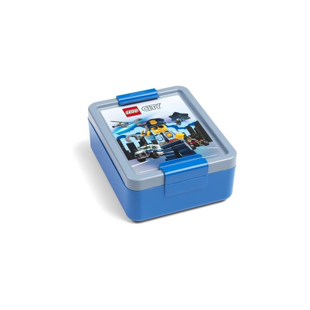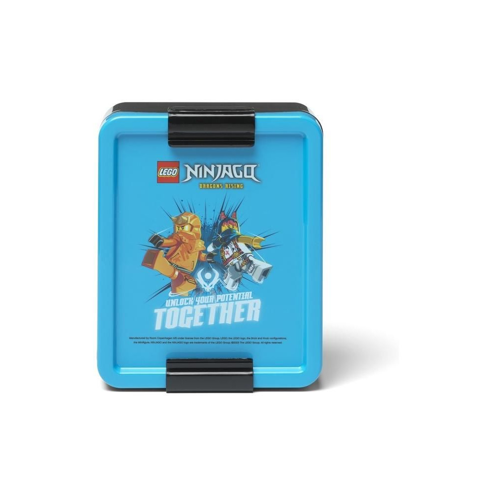 A LEGO uzsonnáskészlet tartalmaz egy praktikus, jól záródó fedéllel ellátott dobozt és egy kupakkal ellátott kulacsot. Komplett uzsonnafelszerelés kirándulásokhoz és iskolába egy lenyűgöző LEGO motívummal.