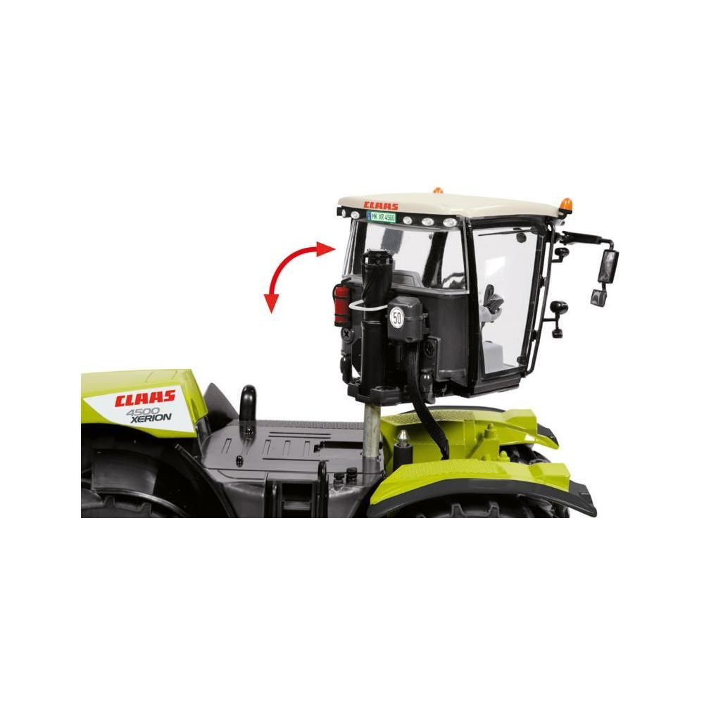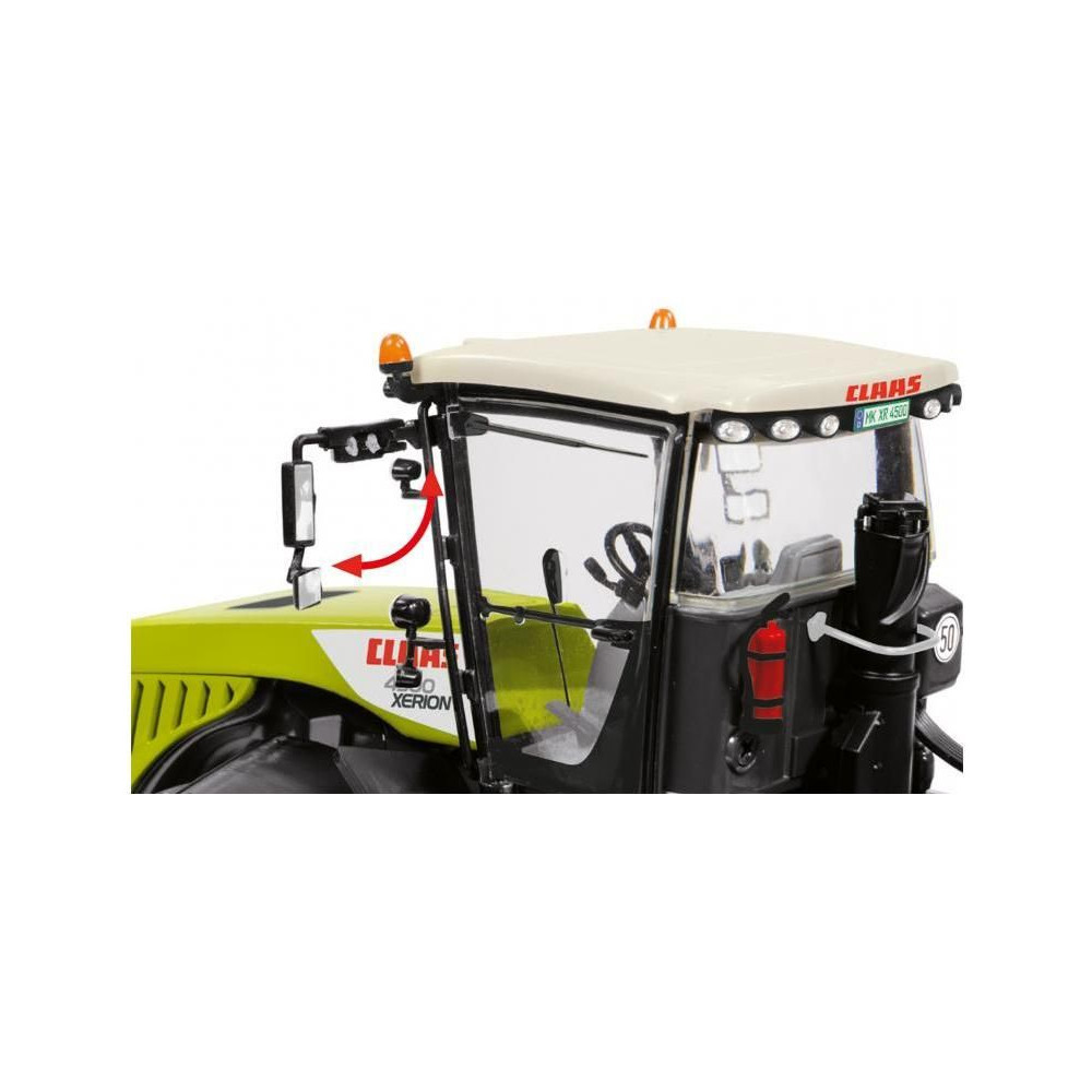 Claas Xerion 4500 traktor fém modellje 1:32 méretarányban. Tartalmazza a forgatható első és hátsó tengelyeket, a forgatható, kihúzható fülkét, a gumiabroncsokat, a nyitható vezetőajtót, a behajtható tükröket, a vontatóberendezést. Játékra és gyűjtésre egyaránt alkalmas. Kiváló minőségű autentikus fém és műanyag kivitelben.