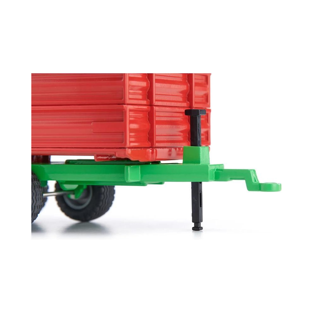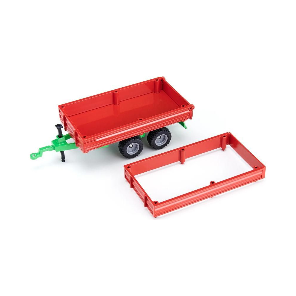 1:32 méretarányú fém utánfutó modell. Az utánfutó felépítménye felemelhető a rakomány ürítéséhez, a hátsó ajtó zsanéros, kihúzható támasztó is tartozik hozzá, a kerekek gumiból készültek, az oldalak leengedhetők. Siku Farmer 1:32-es, vonóhoroggal ellátott modellekhez csatlakoztatható. Játékra és gyűjtögetésre is alkalmas. Minőségi fém- és műanyag kidolgozás.