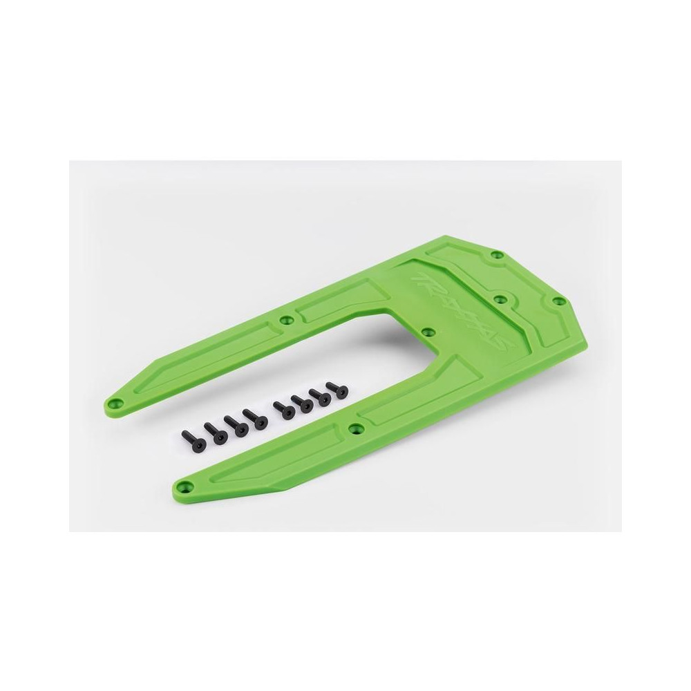 Tuning alkatrész RC modellautóhoz Traxxas Sledge: alvázfedél zöld. Az alumínium alváz aljának védelmére szolgál a karcolások és sérülések ellen. Tartalmazza a rögzítéshez szükséges csavarokat.