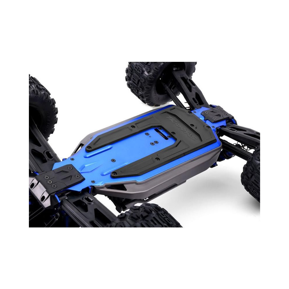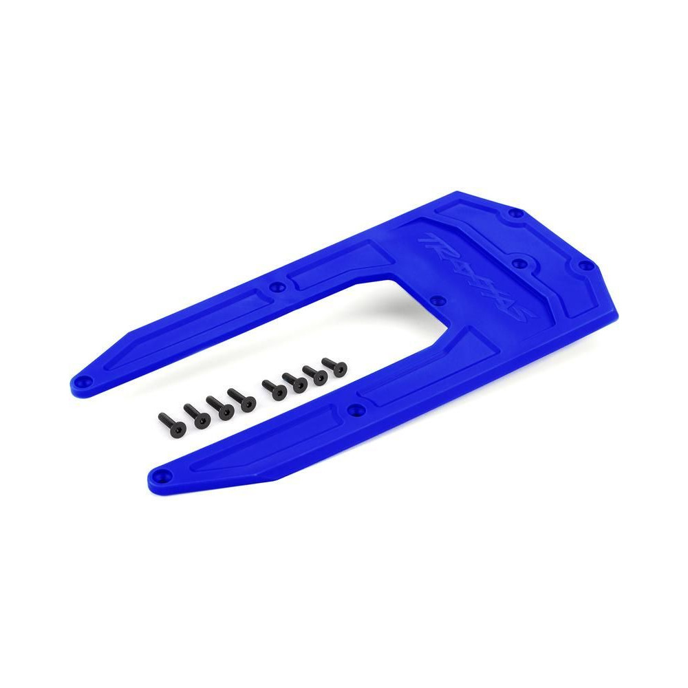 Tuning alkatrész RC modellautóhoz Traxxas Sledge: alvázfedél kék. Az alumínium alváz aljának védelmére szolgál a karcolások és sérülések ellen. Tartalmazza a rögzítéshez szükséges csavarokat.