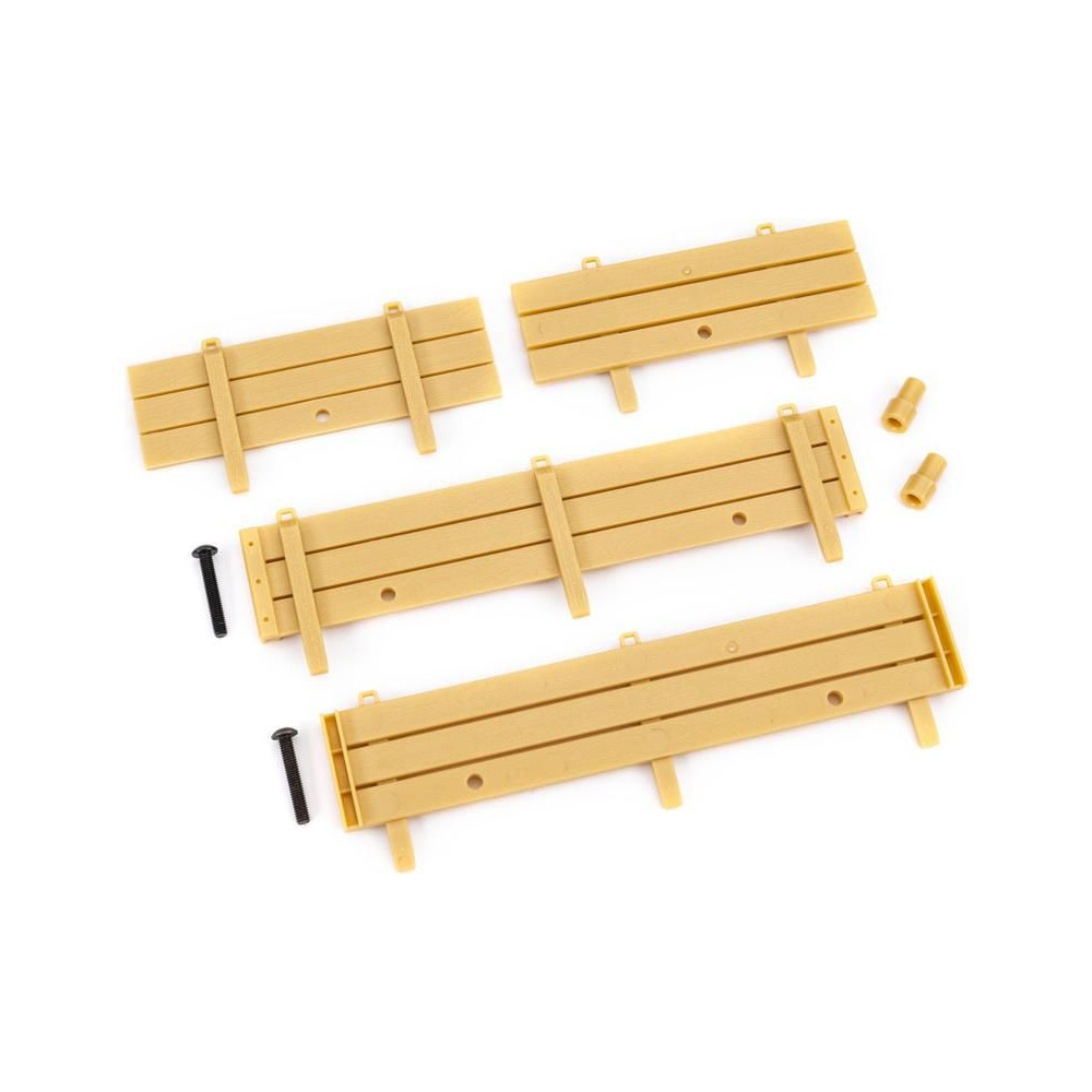 Traxxas pótkocsi oldalsó panelek a rakodókapacitás növelésére. Mock-up megjelenés fa textúrával. Lyukak pótpótkocsi kerekek rögzítéséhez (külön megvásárolható).
