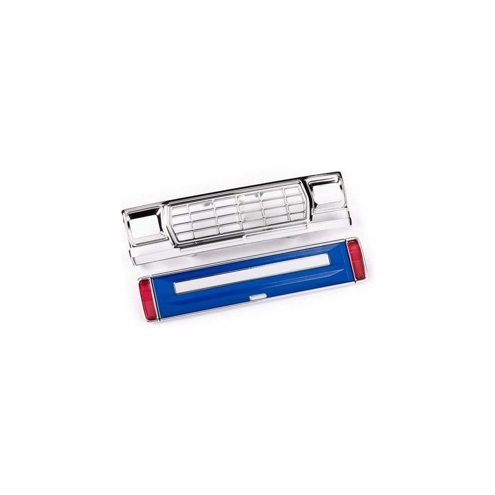 Pótalkatrész RC modellautókhoz Traxxas TRX-4M Ford F-150 1979: karosszéria maszk kék (a #9812-hez). Krómozott első hűtőrács és kék hátsó panel. Beleértve a hátsó lámpa parabolákat.