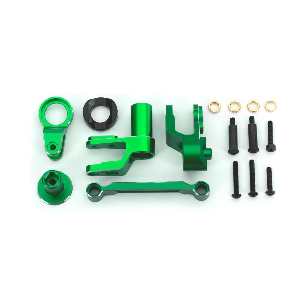 Tuning alkatrész Traxxas Maxx Slash RC autóhoz: kormánymű tartós 6061-T6 alumíniumból, zöldre eloxálva a tökéletes megjelenésért. Növeli a modell kormányzás erősségét és pontosságát. Kompatibilis a TRA10247 alumínium kormánykarral is.