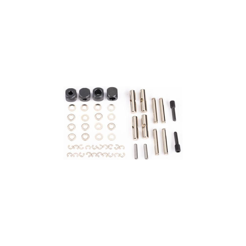 Traxxas U-csuklós tengely szervizkészlet két tengelyhez. Tartalmazza a hordozót (4), a kereszttűt (4), a lyukas csapot (4), a menetes zárócsapot (2), a csapot (2), a szetet (6).