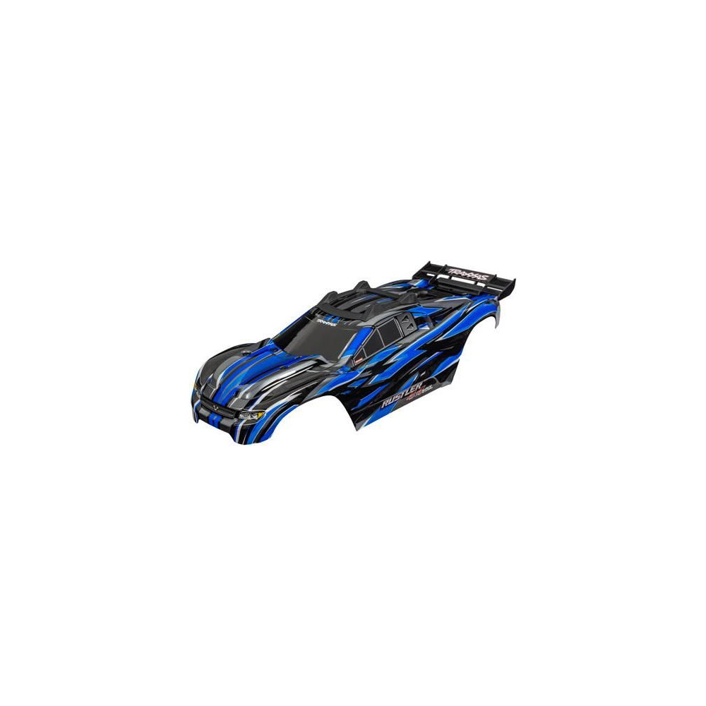 Pótalkatrész RC modell autókhoz Traxxas Rustler 4x4 1:10 VXL: karosszéria kék. Festve, matricázva, összeszerelve, első és hátsó karosszériatartókkal és hátsó karosszériatartóval a klipsz nélküli rögzítéshez. Tengelytáv 295mm.