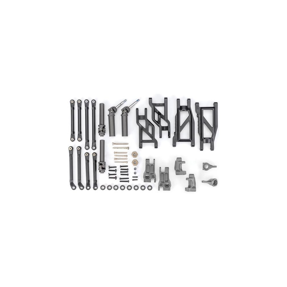 Extreme Heavy Duty felfüggesztéskészlet - szürke, nehéz munkára. Frissítse fel modellje szabadon álló részeit ezzel a készlettel, amely a Traxxas által használt legkeményebb anyagokból készült. Akár durva terepen haladsz át, akár ugrálsz a modelleddel, ezt a készletet úgy tervezték, hogy tartós legyen. A csomagban olyan egyedi alkatrészek találhatók, amelyek könnyen kicserélhetők az eredetivel.