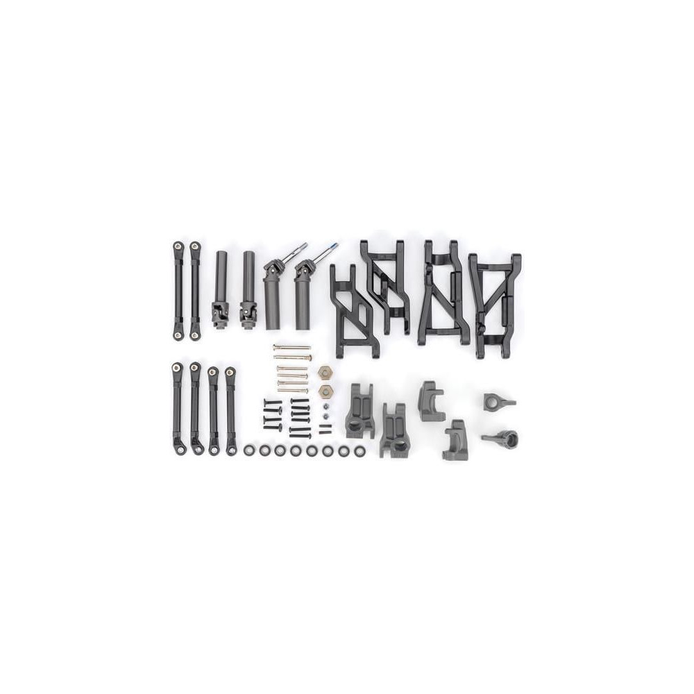 Extreme Heavy Duty felfüggesztéskészlet - szürke, nehéz munkára. Frissítse fel modellje szabadon álló részeit ezzel a készlettel, amely a Traxxas által használt legkeményebb anyagokból készült. Akár durva terepen haladsz át, akár ugrálsz a modelleddel, ezt a készletet úgy tervezték, hogy tartós legyen. A csomagban olyan egyedi alkatrészek találhatók, amelyek könnyen kicserélhetők az eredetivel.