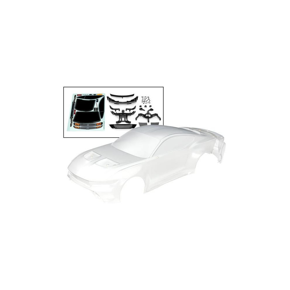 Pótalkatrész RC autó modellekhez Traxxas 4-Tec Drift Ford Mustang: body clear. Tartalmazza az oldalsó tükröket, spoilert, hűtőrácsot, légbeömlőket, tartozékokat klipszek nélkül.