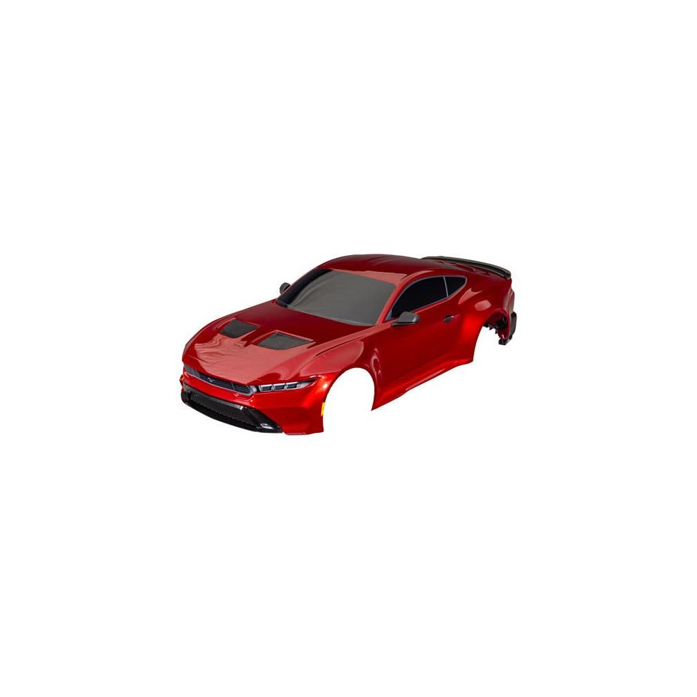 Pótalkatrész RC autó modellekhez Traxxas 4-Tec Drift Ford Mustang: karosszéria pirosra fényezve, tartalmazza az oldalsó tükröket, spoilert, hűtőrácsot, légbeömlőket, klipszek nélkül.