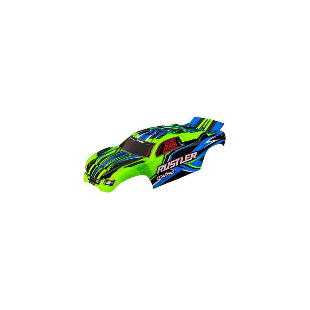 Traxxas Rustler karosszéria napfénytelen zöld színben. Kész, festett karosszéria. Pótalkatrész Traxxas Rustler RC autómodellhez, rugó nélküli karosszéria rögzítéssel.