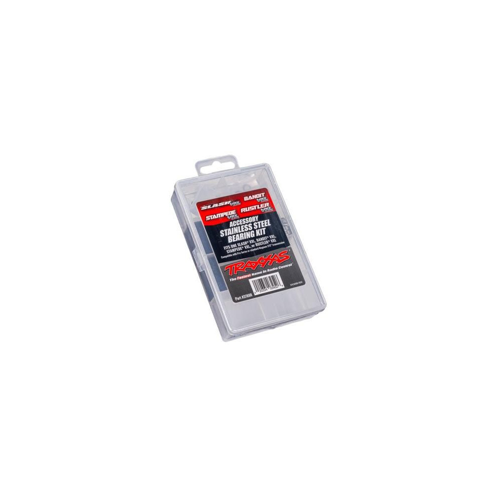 Traxxas rozsdamentes acél golyóscsapágy készlet 2WD modellekhez Slash VXL, Bandit VXL, Stampede VXL, Rustler VXL. Cserélje ki modelljének csapágyait eredeti újakra ezzel a cserekészlettel. A csapágykészletet egy praktikus dobozba csomagolták, amely rekeszekkel és címkével rendelkezik a könnyű mérés és alkatrészazonosítás érdekében.