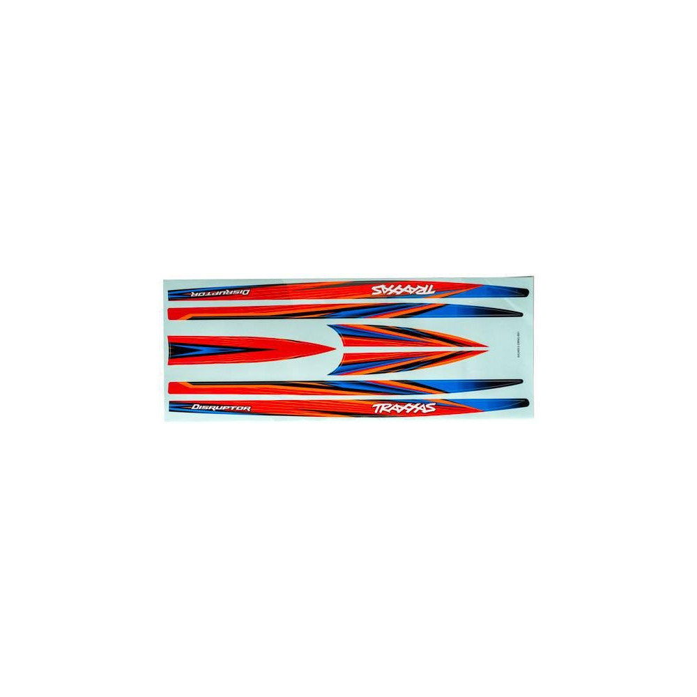 Pótalkatrész a Traxxas Disruptor RC modellhez: hajótest matricák narancssárga színben.