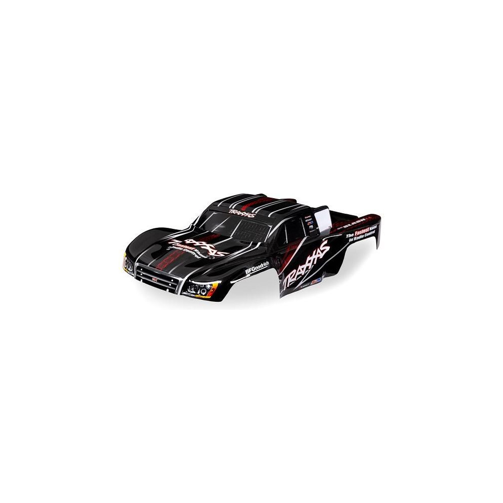 Traxxas Slash 1:16 fekete karosszéria - kész festett karosszéria, tartós polikarbonátból készült, matricákkal díszítve. Traxxas Slash 1:16-os modellhez.